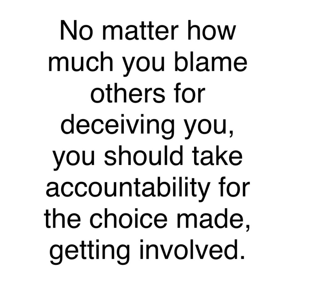 It is easy to blame others than to hold ourselves accountable for making poor choices. It does not matter what a person tells you, it is you who gets to decide if you want to get involved, not them.